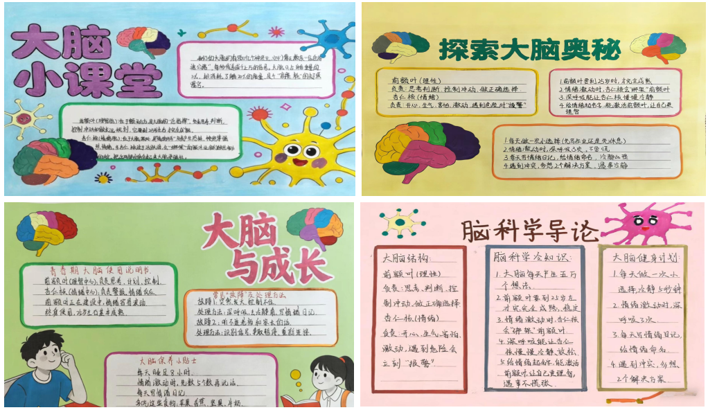 为深化学习效果,学校还组织手抄报创作活动。学生们将抽象的大脑知识转化为图文并茂的作品,在笔尖流淌的智慧中巩固所学。